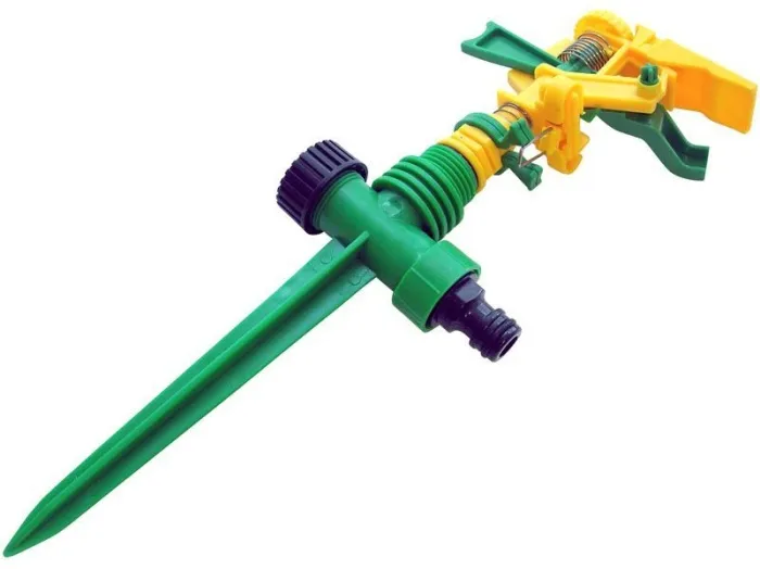 На пике. Для стационарного орошения почвы в радиусе до 17 м. Два соединительных гнезда распылителя обеспечивают его использование в цепи из нескольких распылителей. Регулировка поворота головки от 0 до 270 градусов по Цельсию. Материал: ABS пластик.
