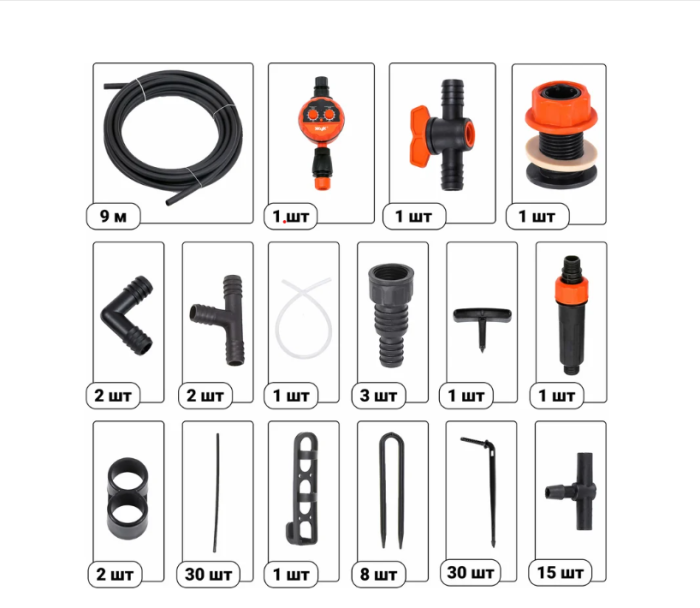 —Набор для капельного полива ЖУК 30 растений от водопровода, таймер