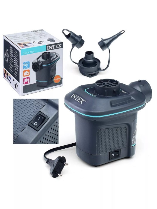 Электрический насос Intex 66640 работает от электрической сети 220В. С помощью данного насоса можно накачивать или сдувать любые надувные изделия производства Intex (кровати, матрасы, бассейны, лодки, плавательные принадлежности, игровые центры). В комплекте 3 насадки.