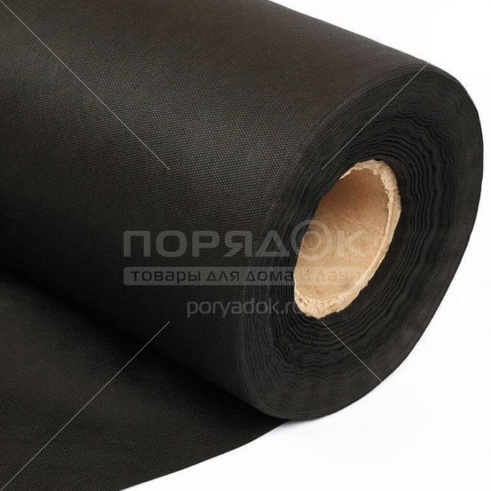 Микропористый паропроницаемый изоляционный материал. Важнейшей его характеристикой является плотность, которая определяет толщину, гибкость и степень прочности (воздухопроницаемости) полотна. Нетоксичен (не вызывает аллергии), не содержит радиоактивных веществ. Черный укрывной материал предназначен для мульчирования почвы. В структуру материала введён технический углерод (сажа), который поглощает большую часть лучей солнечного спектра. Сорняки, находясь под материалом, не получают достаточного света и погибают. Полотно укладывается на приготовленный участок земли, с краёв закрепляется, в местах высадки рассады делается крестообразный надрез, в который высаживается растение. Материал не снимают вплоть до ликвидации культуры. На грядках с многолетними ягодными культурами (клубника, земдяника и т.д.) материал находится круглый год.
