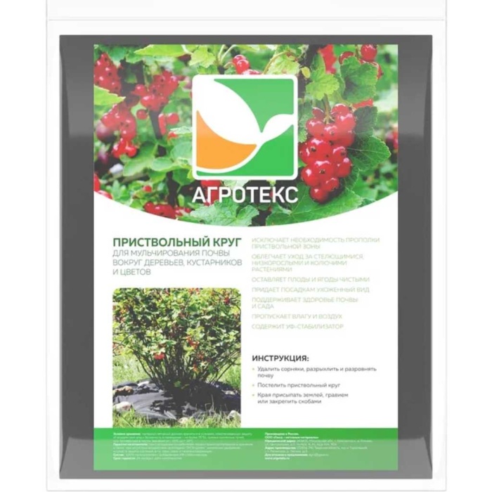 Материал используется для мульчирования почвы вокруг деревьев и кустарников. Материал сдерживает рост сорняков, сохраняет необходимый уровень влажности, предотвращает появление почвенной корки.