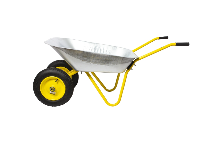 Садовая двухколесная тачка ВАРЯГ-ТС65/2  с прочной конструкцией способна транспортировать до 90 кг грузов. Имеет два пневмоколеса, поэтому оказывает незначительное давление на грунт и обладает хорошей устойчивостью на неровной поверхности. Благодаря мощной раме кузов не деформируется при перевозке тяжелых грузов.