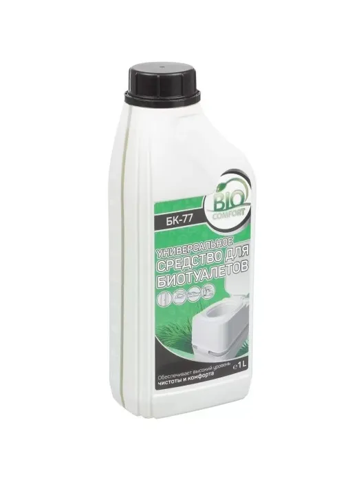 Средство Биокомфорт БК-77 универсальное, концентрированное, биоразлагаемое средство с хвойным запахом, предназначенное для ухода за биотуалетами, как для верхнего, так и для нижнего бачков. Совместим со всеми видами биотуалетов.