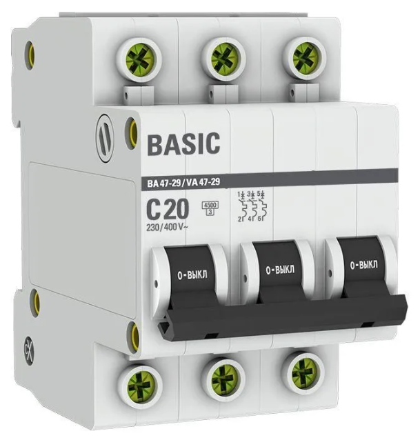 Автоматический выключатель 3P 20А (C) 4,5кА ВА 47-29 Basic