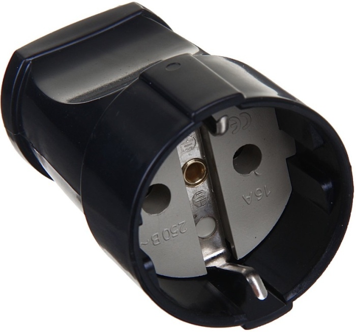 —Розетка переносная 16А 250В с заземлением черная (еврослот) UNIVersal