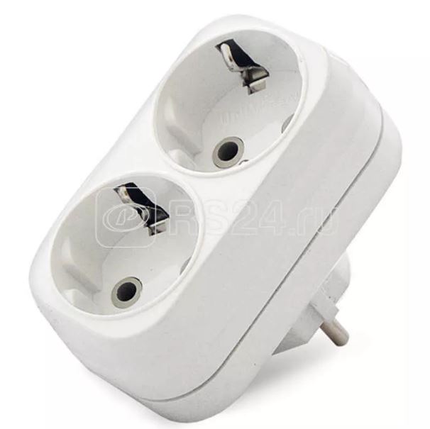Плоский разветвитель 2 гнезда, заземление, белый 16А 250В UNIVersal А302 - простое и удобное устройство для разветвления одной стационарной розетки и возможности подключения одновременно двух бытовых электроприборов. Заземление обеспечивает повышенный уровень электробезопасности.