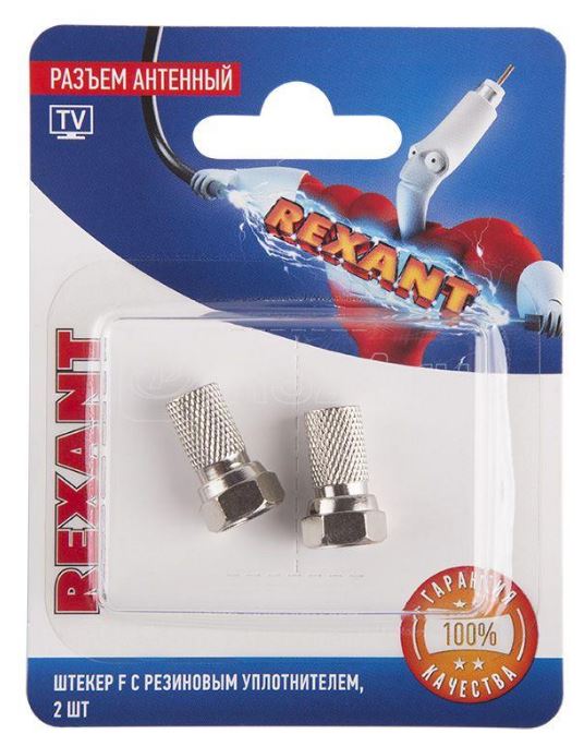 Разъем антенный на кабель, штекер F для кабеля SAT (с резиновым уплотнителем), (2шт.) REXANT