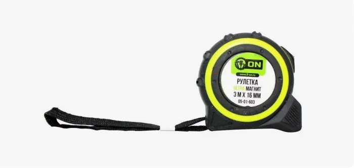 Рулетка ON ULTRA 3м х 16мм, двухкомпонентный корпус, магнит 05-01-603 легко крепится к любой стальной детали. Мощный магнит удобен для работы с большими деталями.
