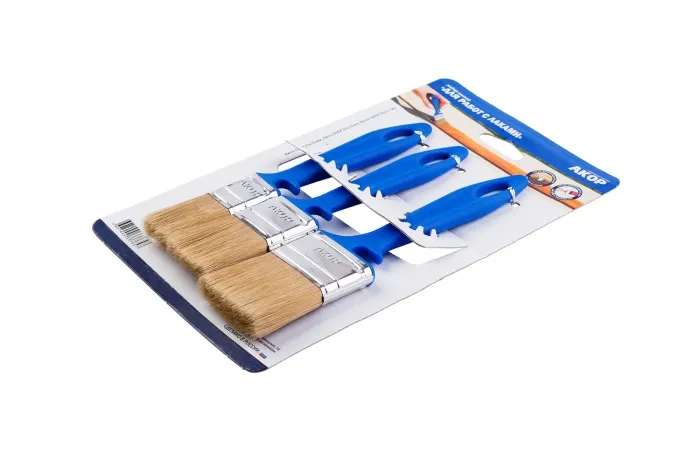 Наборы из флейцевых кистей шириной 25, 35 и 50 мм – это комплексное решение для лакировки небольших помещений или предметов. Допускается использование с красками на «Водной основе» и для «Работ по дереву».