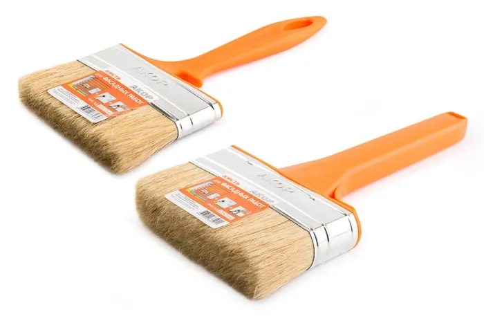 «ФАСАДНЫЕ РАБОТЫ» – это, как правило, работы с большими площадями. Эти работы требуют более густой, плотной набивки по сравнению с прочими кистями. Данную группу отличает высокая производительность и прочная фиксация щетины. Практикуется использование для работ с «ЭМАЛЯМИ» и «ЛАКИРОВКИ» больших, грубых поверхностей.