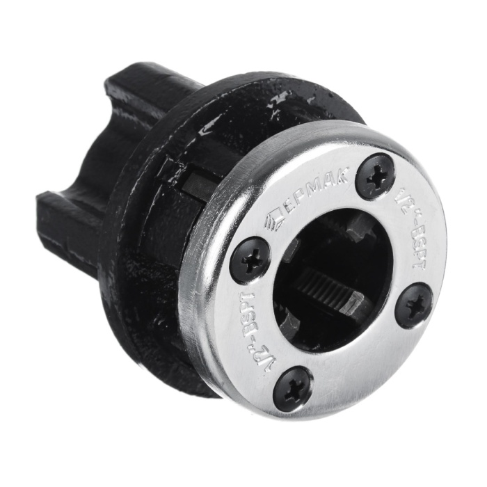 Клупп ЕРМАК 1/2" 653-005 используется для нарезки наружной резьбы BSPT на трубах. Инструмент выполнен из качественной углеродистой стали. Материал отличается прочностью и надежностью. Подходит для профессионального использования.