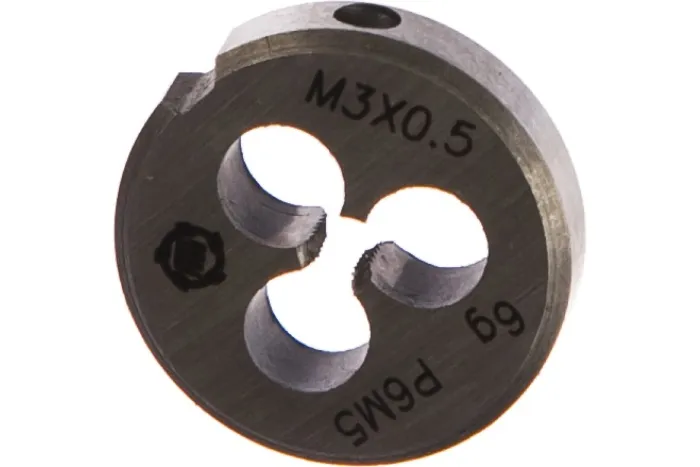 Плашка М 3 х0.5  представляет собой удобный и надежный инструмент для нарезания правой резьбы.