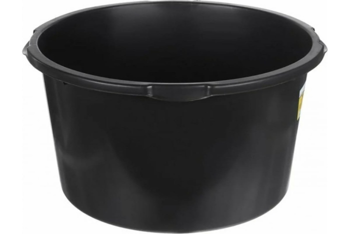 Круглый строительный таз изготовлен из вторичного полипропилена. Емкость применяется для разведения строительных смесей - штукатурок, шпаклевок, грунтовок. Усиленная кромка борта препятствует деформации таза в процессе эксплуатации. Для удобства перемещения предусматриваются небольшие ручки.