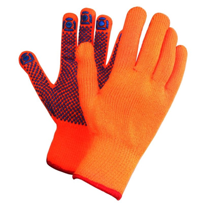 Перчатки с ПВХ утепленные (акрил-70%,хб-30%) оранж/коричн