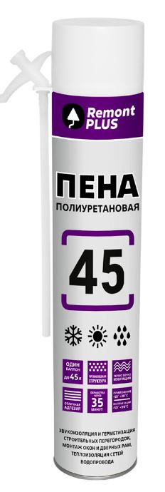 Пена монтажная бытовая Remont Plus 45, всесезонная, 410 мл