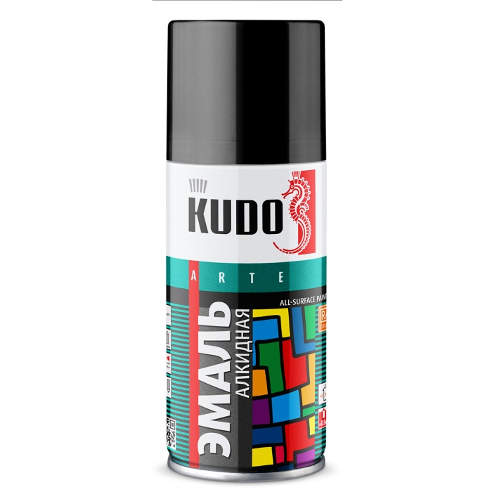 —Краска аэрозольная алкидная Kudo KU-1002.1, глянцевая, 210 мл, RAL 9005, черная
