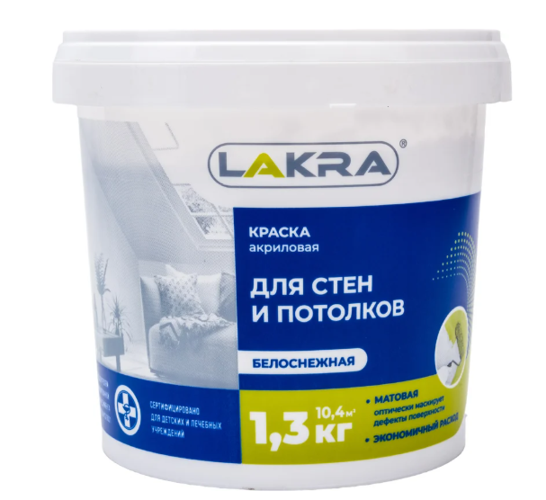 Краска ВД для стен и потолков 1,3кг ЛАКРА