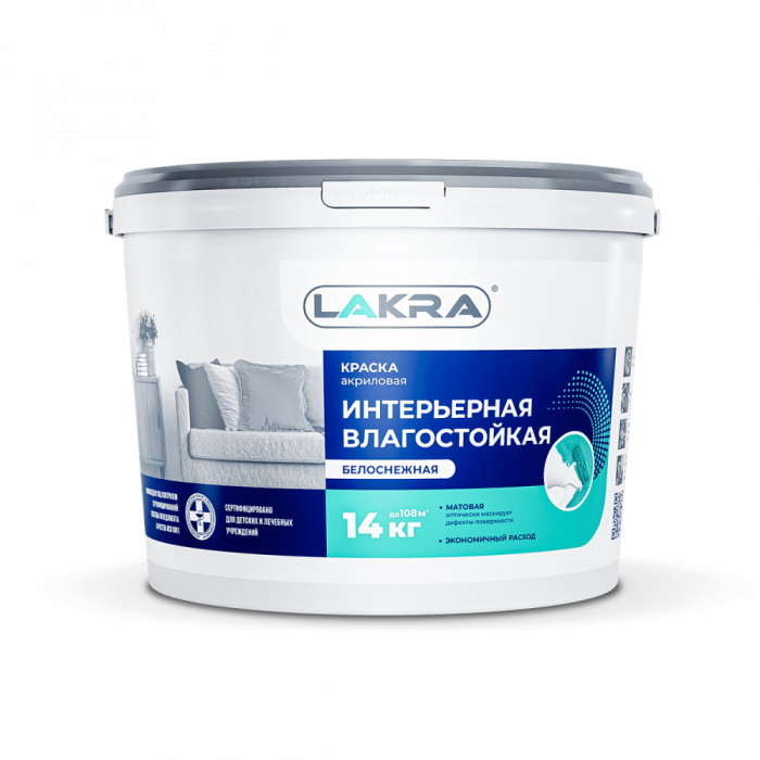 —Краска ВД интерьерная влагостойкая супербелая 14кг ЛАКРА
