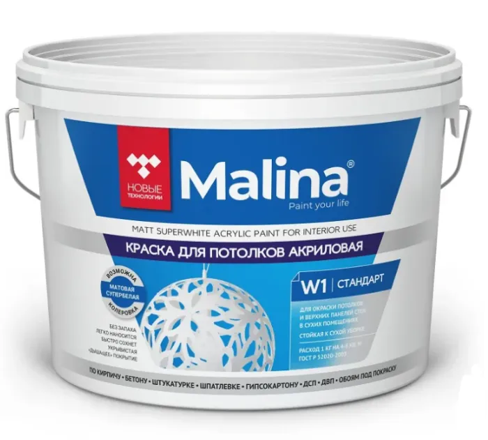 Краска акриловая потолочная предназначена для выполнения окраски потолков внутри помещений с нормальной влажностью: гостиные комнаты, спальни, детские комнаты, а также общественные и производственные помещения.