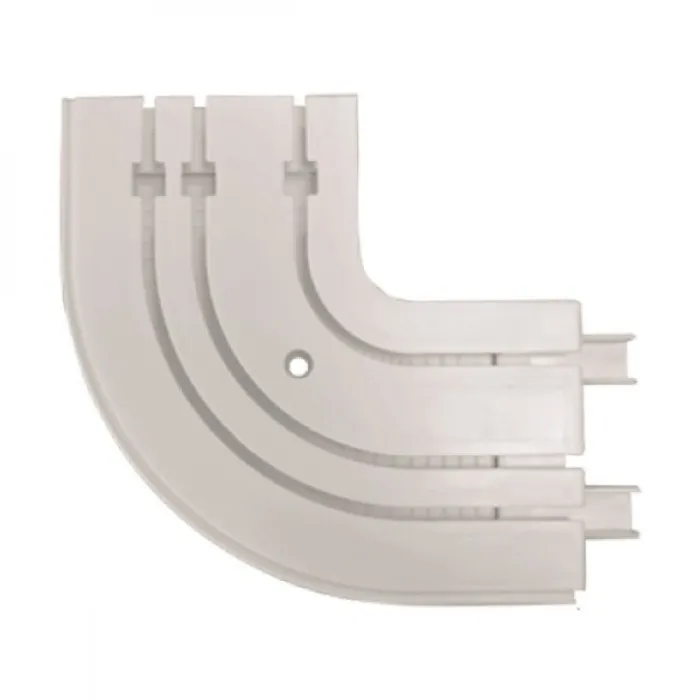 Соединитель поворотный трехрядные является готовым решением для карнизов с пластиковой шиной. Это поворотный элемент, который позволяет создать пластиковую шину с круглыми боковинами или эркером. Изготовлен из белого пластика.