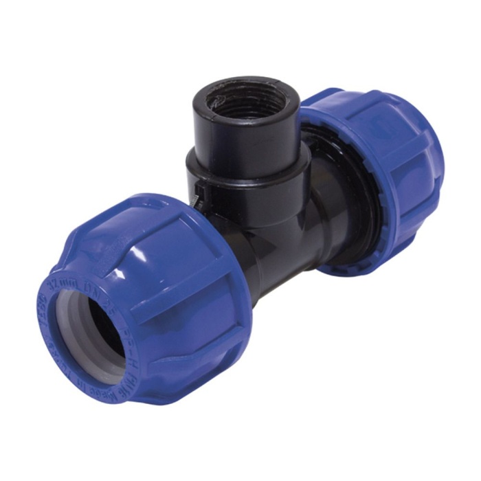 Компрессионные фитинги применяют для соединения полиэтиленовых труб для водоснабжения малых диаметров механическим способом. Тройник компрессионный ПНД применяется для соединения полиэтиленовых труб в системах холодного водоснабжения. Надёжное и герметичное соединение обжимного тройника и трубы ПНД обеспечивается цангой и резиновым уплотнением, входящими в комплект.