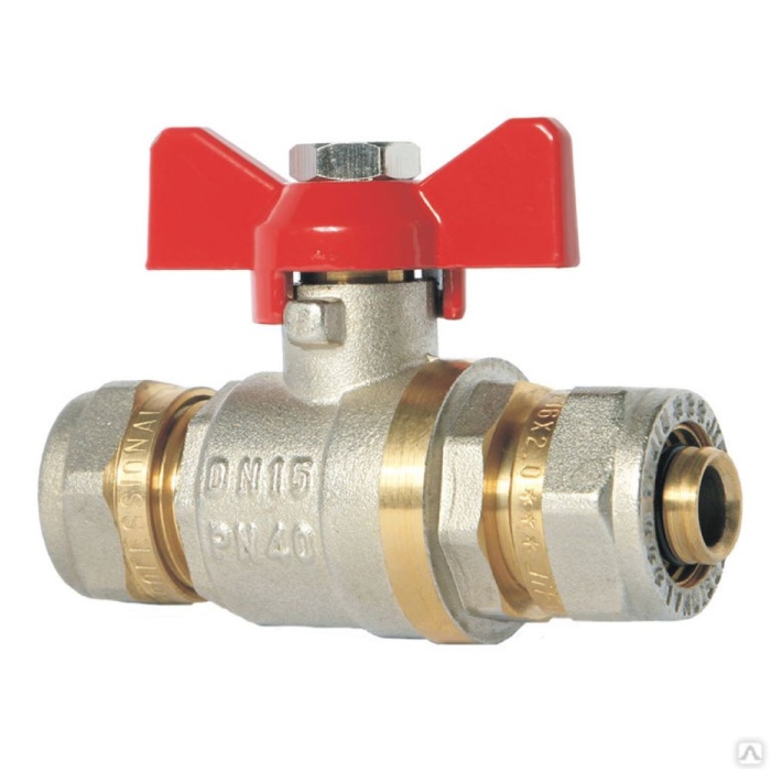 Шаровый кран — применяется для регулировки потока воды, полнопроходной. Корпус выполнен из латуни, которая используется во всех высококачественных фитингах. Его ресурс составляет 4000 циклов, что вполне достаточно, если учитывать, что кран открывается и закрывается 1-2 раза в год. Кран-бабочка позволяет сэкономить место в сантехшкафу по сравнению со стандартным краном-ручкой.