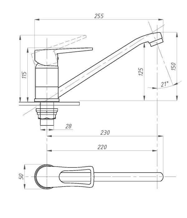 Высота общая по изливу (мм): 150