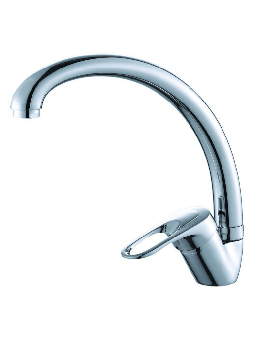 Смеситель для кухни с высоким поворотным изливом SOLO. Однорычажный смеситель. Корпус выполнени из цинкового сплава. Многослойное никель-хромовое покрытие придаёт блеск и надежно защищает изделие от коррозии. Рабочим элементом выступает картридж с керамическими пластинами диаметром 35 мм. Поворотный излив изготовлен из нержавеющей стали и оснащён каскадным аэратором с пластиковой сеткой, делающей струю более мягкой и позволяющей экономить воду. Гибкая подводка снабжена накидными гайками G=1/2".