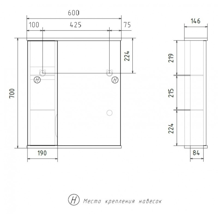 Зеркало-шкаф LAKE 60 левый (белый) (VOLANA)