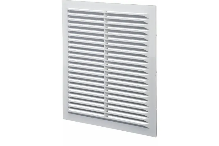 Вентиляционная решетка П1319С с москитной сеткой (наклонные жалюзи наружу для естественной вытяжки). Применяется для декорирования входных и выходных отверстий каналов бытовой вентиляции.