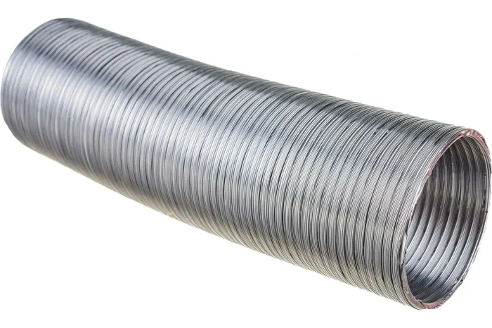 Воздуховод гибкий предназначен для приточных и вытяжных систем вентиляции и кондиционирования. Представляет собой легкую и эластичную гофрированную трубу из алюминиевой фольги. Между собой воздуховоды соединяются при помощи соединительных элементов соответствующего диаметра.