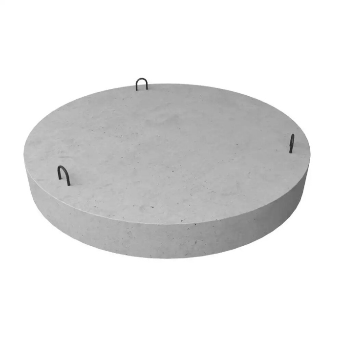 Днище колодца представляет собой монолитную железобетонную плиту идеальной круглой формы с тремя монтажными петлями.