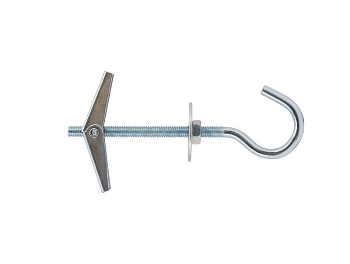 Складной пружинный дюбель с крюком предназначен для крепления в пустотелые материалы с размером полости достаточной для раскрытия дюбеля при монтаже (min глубина полости 35 мм) к гипсокартону (ГСК), ДСП или другим тонколистовым материалам