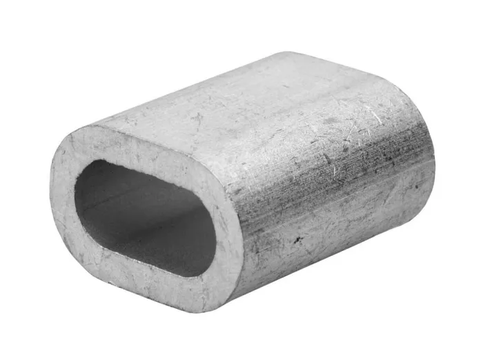Зажим троса служит для формирования петель при помощи коуша. В основном алюминий применяется там, где нет больших нагрузок, например, для подвешивания светильников, полок, элементов декора.