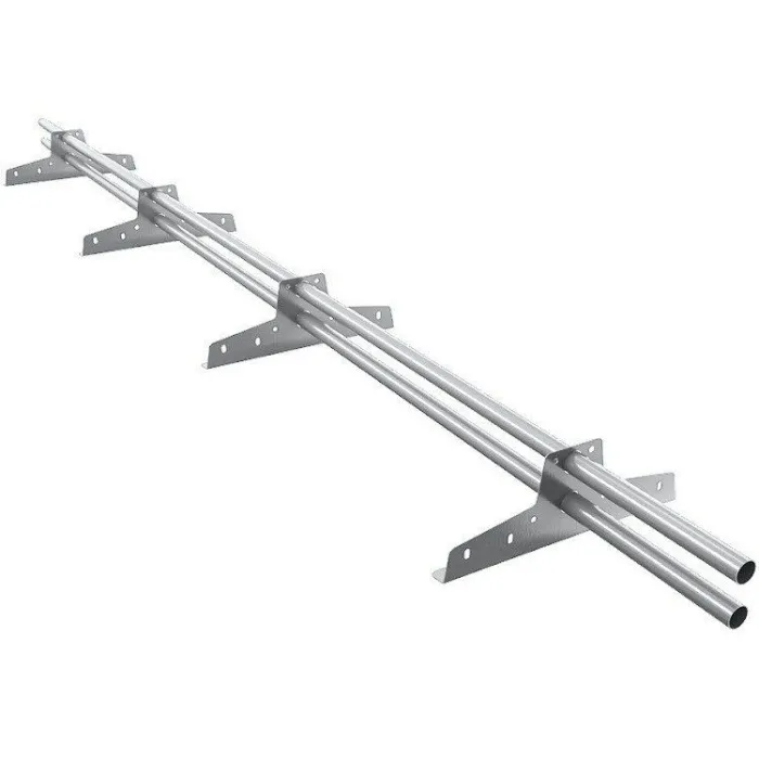 Самый доступный вариант ограждения со снегозадержателями. Может устанавливаться на крышах из самых разных материалов. Установка кровельного ограждения исключает риск падения людей при выполнении ремонтных работ и уборки, а также удерживает снег на скатах, предотвращая его лавинообразный сход. Такие устройства обязательны к установке на зданиях выше 10 м.