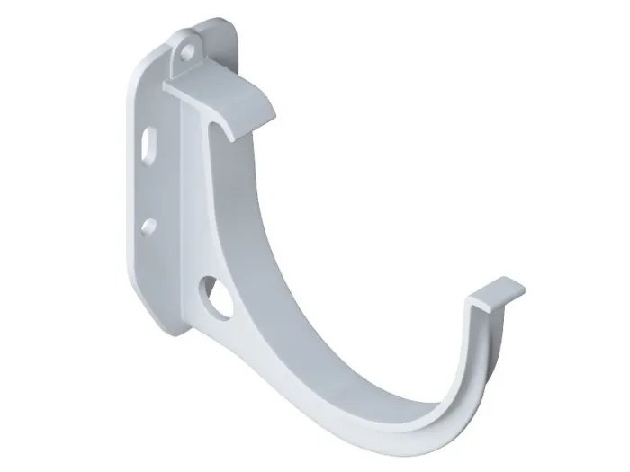 Кронштейны устанавливаются на расстоянии 60см друг от друга, это позволит исключить провисание желоба (например, когда в нем собирается опавшая листва, снег и т.д). Внизу кронштейна имеется отверстие, которое может быть использовано для фиксации проводки, праздничных гирлянд и т.д.