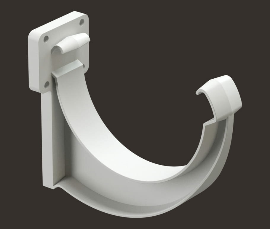 Кронштейн пластиковый. Предназначен для крепления желоба на кровлях с лобовой доской.