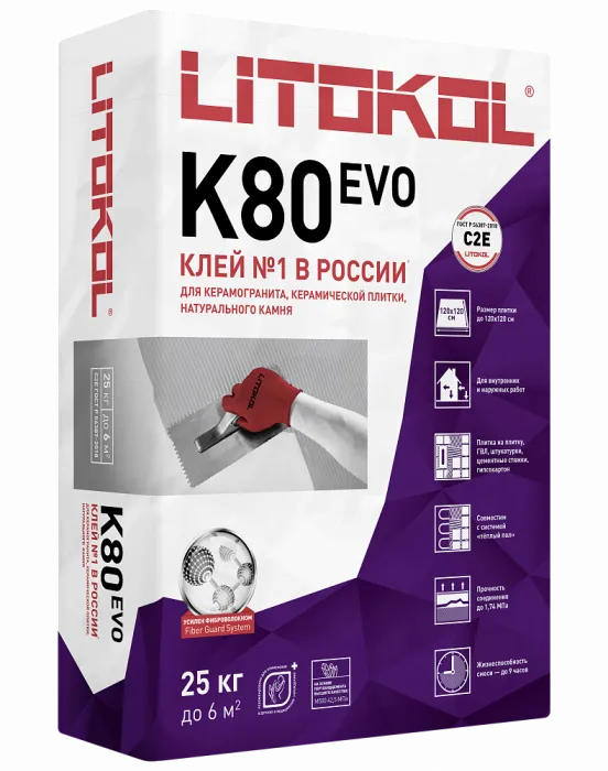 Клей фиброармированный для керамической плитки, керамогранита и камня. Класс С2 E по ГОСТ Р 56387.