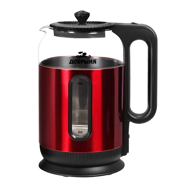 Чайник Добрыня DO-1270R ,1.6л, 1500Вт нжс/стекло красный