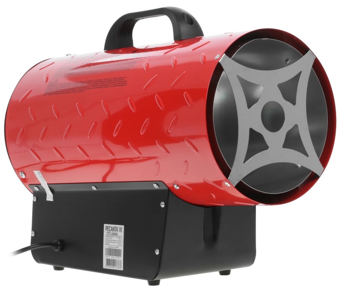 Газовая тепловая пушка Ресанта ТГП-30000 используется для обогрева больших помещений с хорошей вентиляцией. Металлическая решетка на сопле препятствует попаданию внутрь устройство различных предметов. Ручка, расположенная на корпусе, упрощает транспортировку тепловой пушки. Предусмотрена защита от перегрева. Оборудование работает на сжиженном газе. Предусмотрены пьезорозжиг, защита от перегрева и температурный датчик на клапане газа.