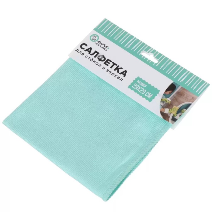 —Салфетка бытовая для стекол и зеркал, микрофибра, 29х29 см, Марья Искусница