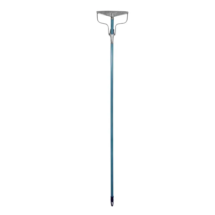 имеется пластиковый колпачок с петлей. Тряпка зажимается с помощью пружинной проволоки. Длина ручки 150 см.
