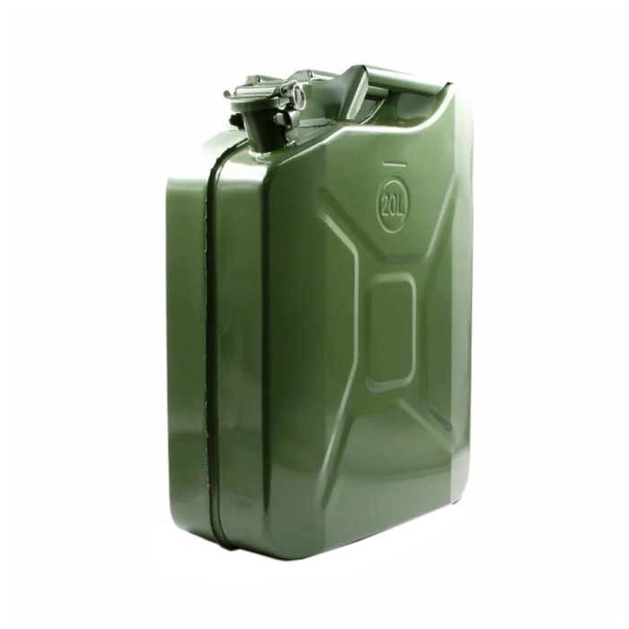 Классическая надежная металлическая канистра для бензина. Вместительность в 20 л - ваш запас бензина с собой.