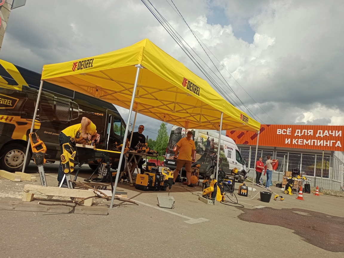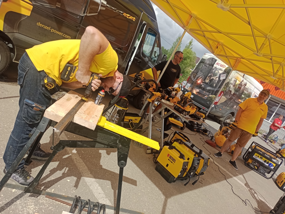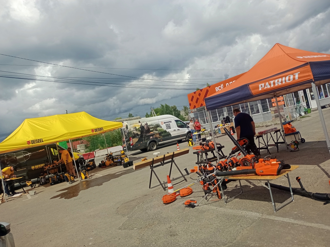 Были представлены такие бренды как "Denzel", "Patriot", "Huter", "Ресанта", "Вихрь". Каждый покупатель мог ознакомиться с новинками, а также попробовать в деле любую из представленных позиций.