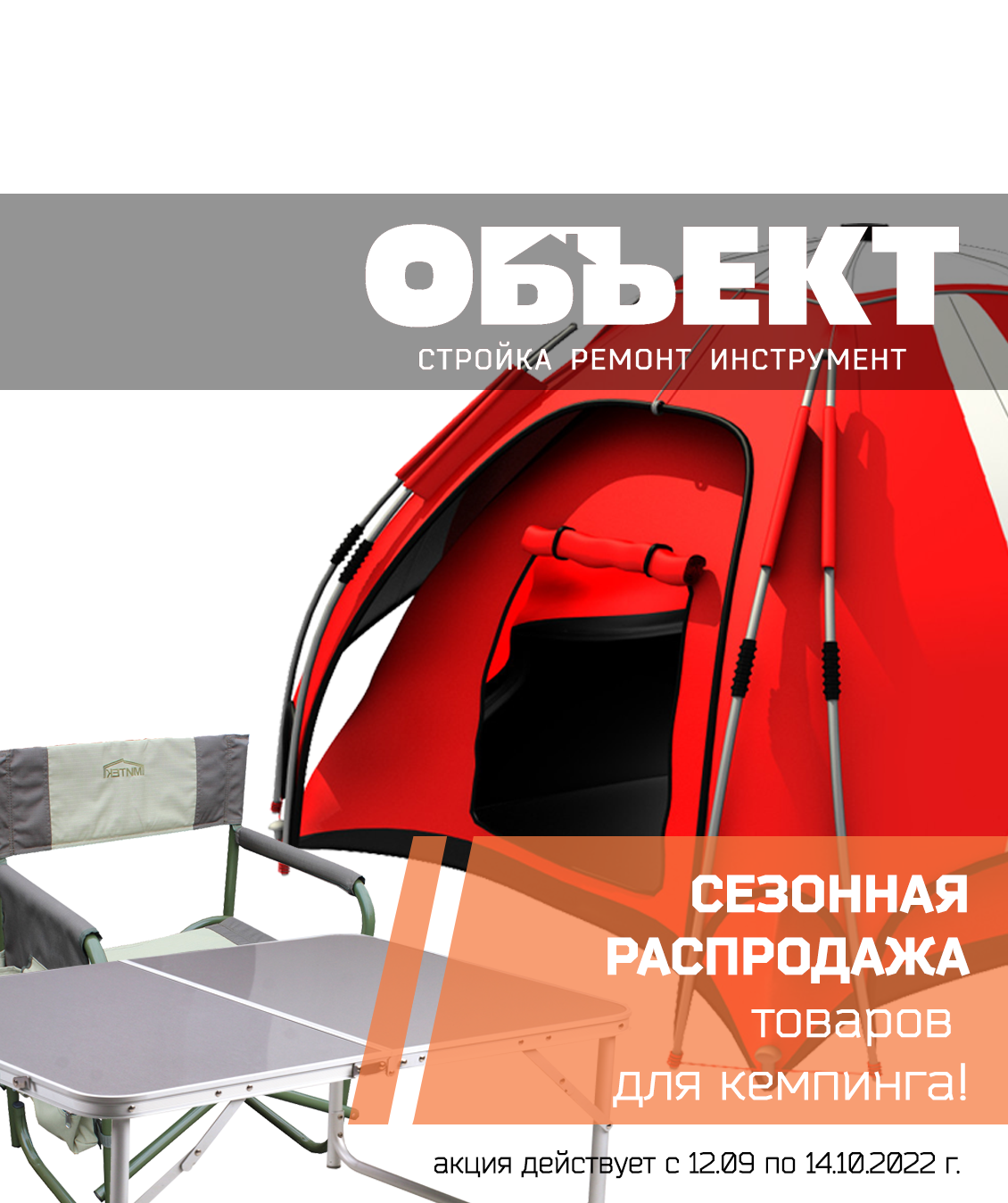 Только с 12.09 по 14.10.2022 г. в магазинах ОБЪЕКТ сезонная распродажа на товаров для кемпинга!