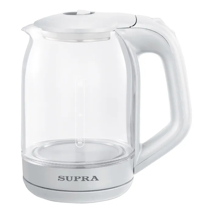 Характеристика: Стильный электрический чайник SUPRA KES-1893 из термостойкого стекла станет украшением Вашей кухни и прекрасным подарком. Объем 1,8 литра и мощность 1500 Вт позволяют быстро вскипятить воду на всю семью, а благодаря вращающейся на 360 градусов подставке, можно повернуть носик чайника в удобное положение. LED подсветка при включенном чайнике служит одновременно индикатором кипения и ночным маячком, если вы используете чайник в темноте. В основании чайника имеется отсек для шнура, с помощью которого можно оставить шнур необходимого размера. Большая эргономичная ручка выполнена с учетом анатомического строения ладони. Чайник имеет защиту от перегрева, которая автоматически отключает питание чайника, если Вы по ошибке включите его пустым, а также в случае перегрева. Индикатор уровня воды поможет без труда определить сколько воды осталось в чайнике. Есть автоматическое отключение при закипании воды, отключение при недостаточном количестве воды и индикатор включения/выключения.