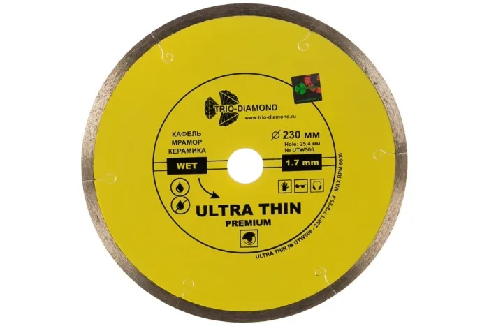 Технические характеристики сплошного ультратонкого отрезного алмазного диска TRIO-DIAMOND UTW506